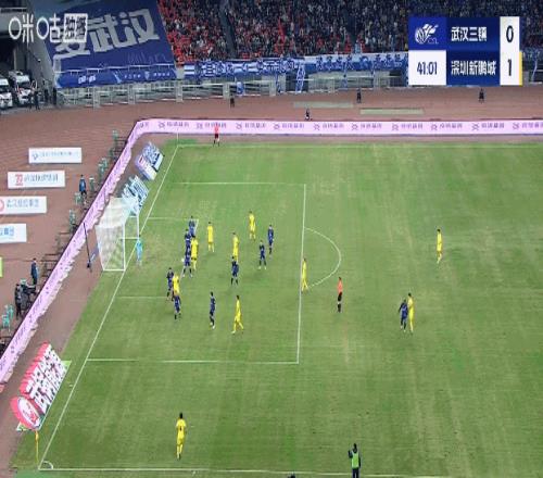 比赛上半场第41分钟,姜志鹏帮助球队制造关键进球;他边线球直接抛到禁区,武汉三镇队后卫头球解围不力,埃杜-加西亚抓住机会高高跃起头球破门!武汉三镇队0-1落后。