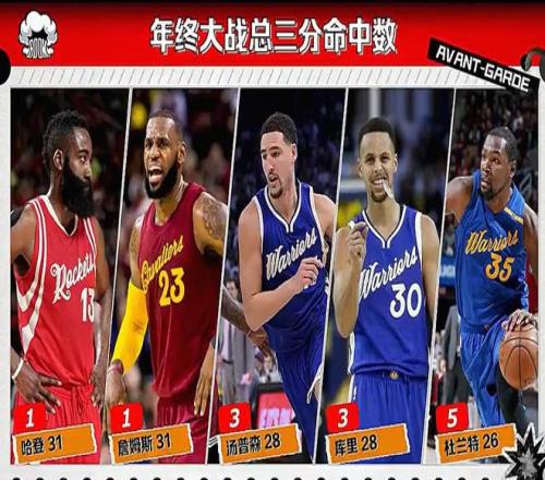 在比赛进行到第一节时,詹姆斯投中三分球。自此,他独享NBA圣诞大战历史上的三分王称号。此前,他与詹姆斯-哈登同以31记三分球并列排在第一名。