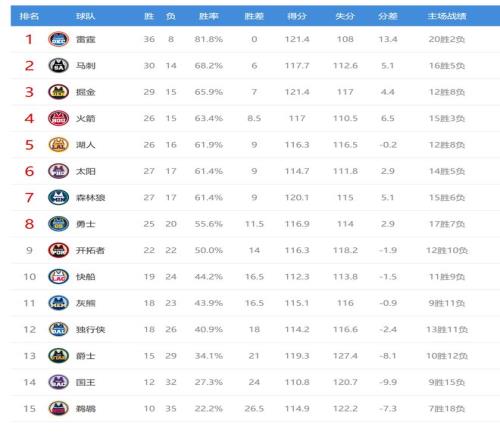 爵士赢球后15胜29负,排名西部第13,森林狼输球后3连败,战绩27胜17负,排名从西部第四掉到第七。